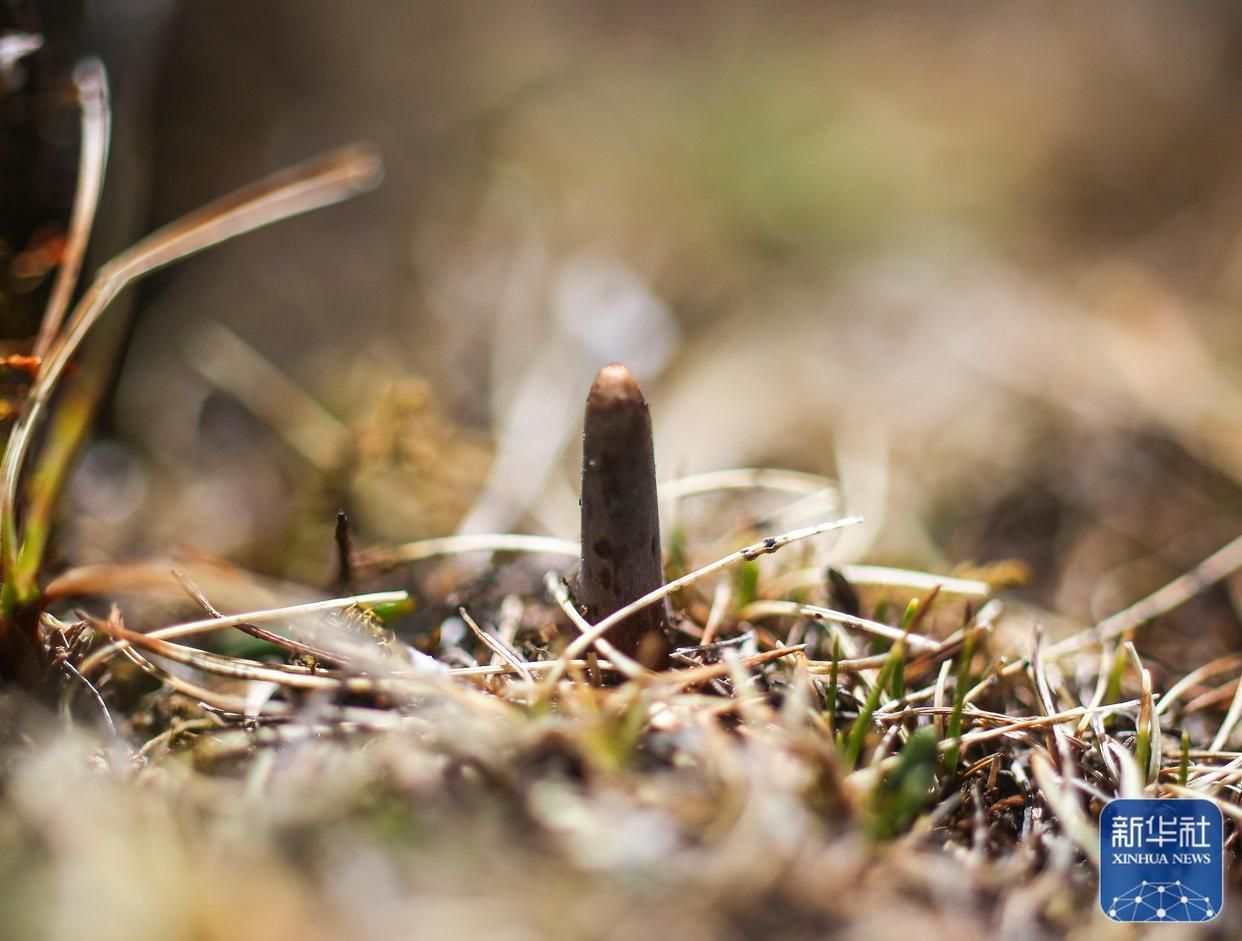 冒出尖頭的蟲草(5月25日攝)。新華社記者 姜帆 攝
